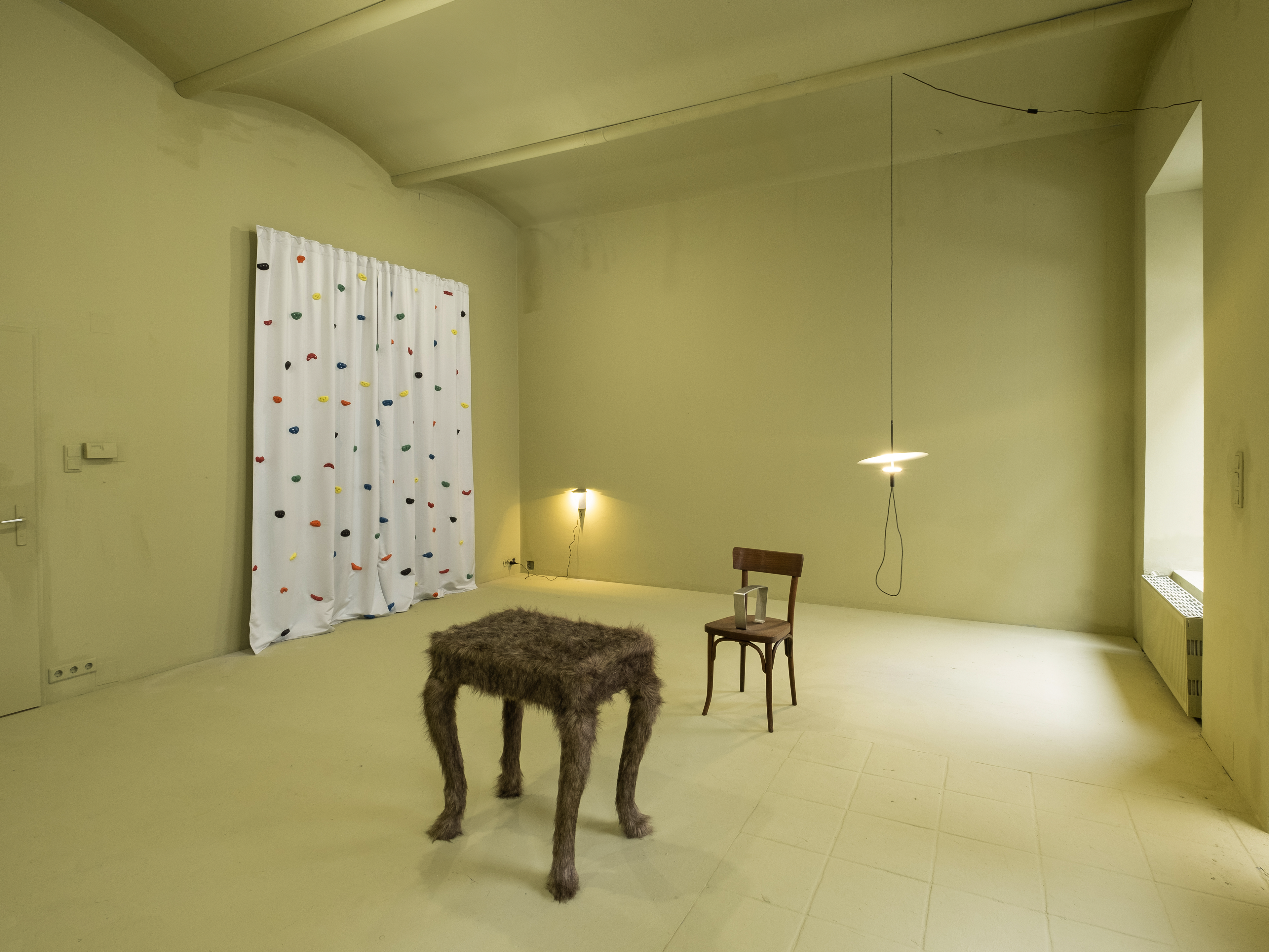 "A four-legged gentle monster looks on as a sofa disappears like a magic trick. While you climbed the softest peak, a vase swallowed all your memories forever and chairs give you no rest anymore. In this enchanted room you must examine everything carefully because things might not be what they seem."